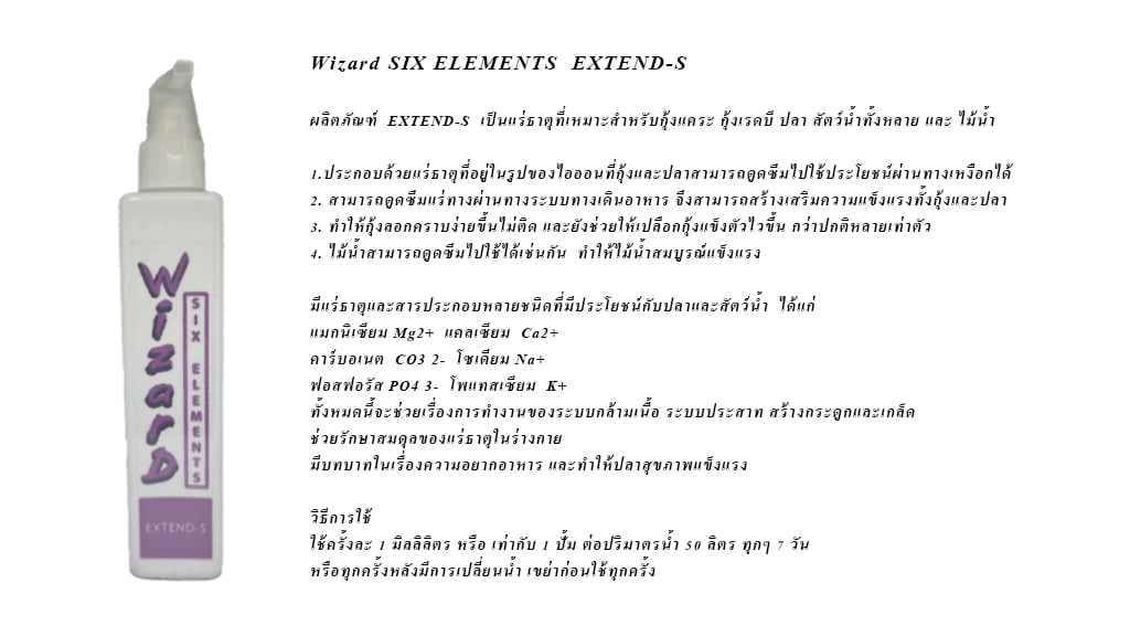 ผลิตภัณฑ์ EXTEND-S เป็นแร่ธาตุที่เหมาะสำหรับกุ้งแคระ กุ้งเรดบี หอยเขาหอยกระทิ หอยกินหอย ปลา สัตว์น้ำทั้งหลาย และ ไม้น้ำ